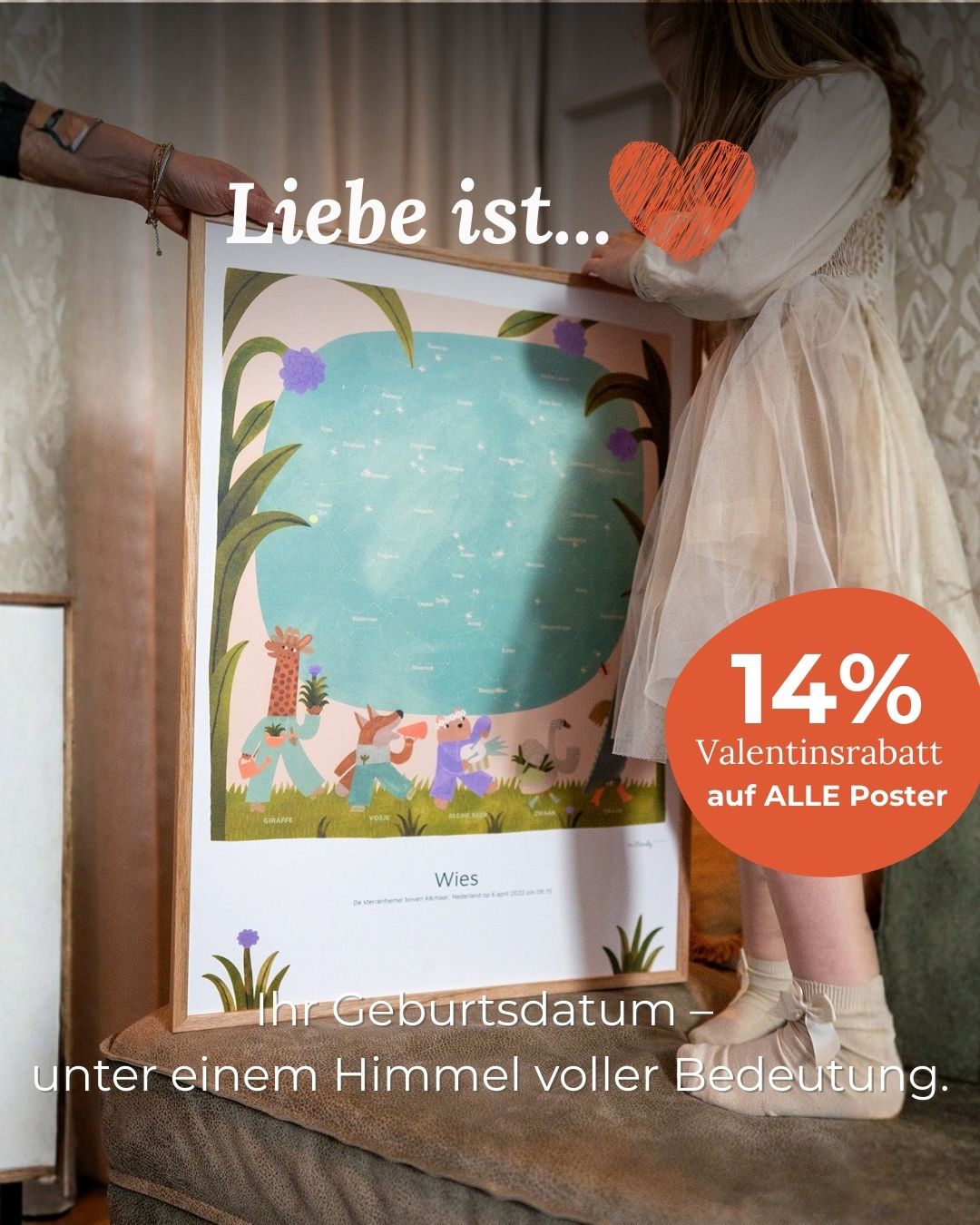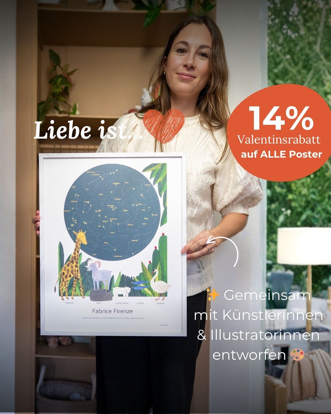 Jedes unserer Sternenhimmel Poster entsteht in Kooperation mit talentierten Künstlern und Designern. Besonders passend für das Kinderzimmer sind die populären Sternenhimmel Geburtsposter mit Tierillustrationen. Für vielseitige Anlässe eignen sich die Sternenhimmel Designs im weichen Aquarell-Stil. Bei einigen Designs ist der Sternenhimmel zusätzlich mit goldener Folie veredelt und gibt den Postern einen besonders luxuriösen Touch.