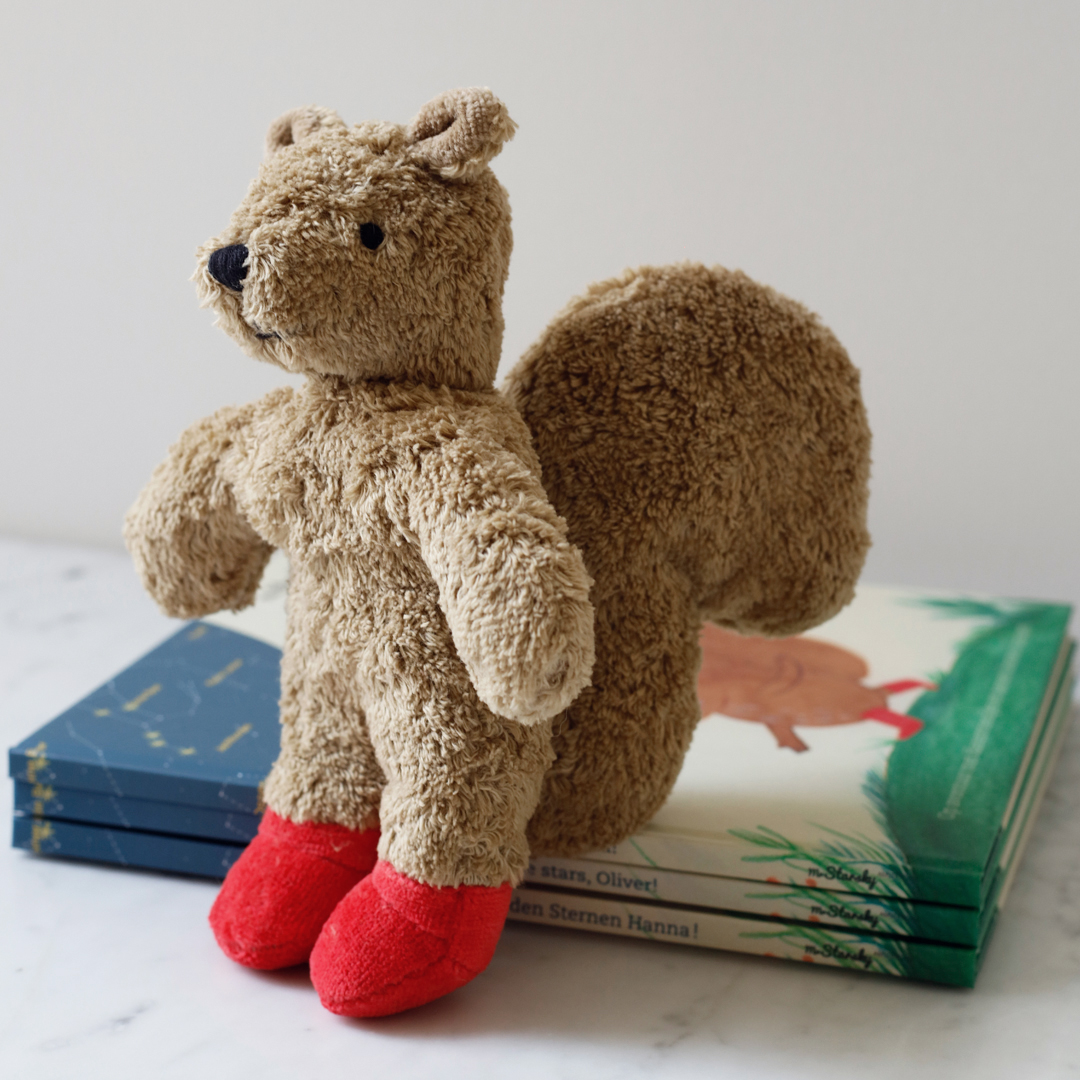 Das kleine Eichhörnchen, die Hauptfigur aus unserem Kinderbuch, gibt es jetzt auch als Kuscheltier, komplett mit roten Stiefeln wie im Buch. Es wurde in exklusiver Zusammenarbeit mit Senger Naturwelt entwickelt und besteht aus rein natürlichen Materialien. Langlebig, weich und endlos kuschelig! Ein süßes Weihnachtsgeschenk das bei Kindern garantiert für Freudestrahlen sorgt!