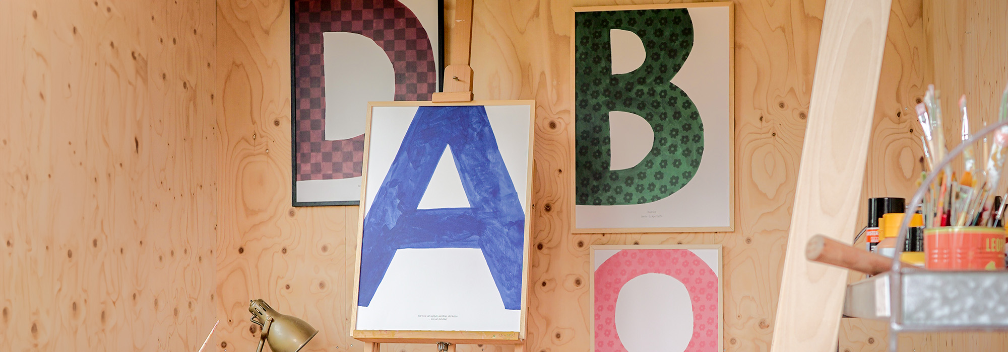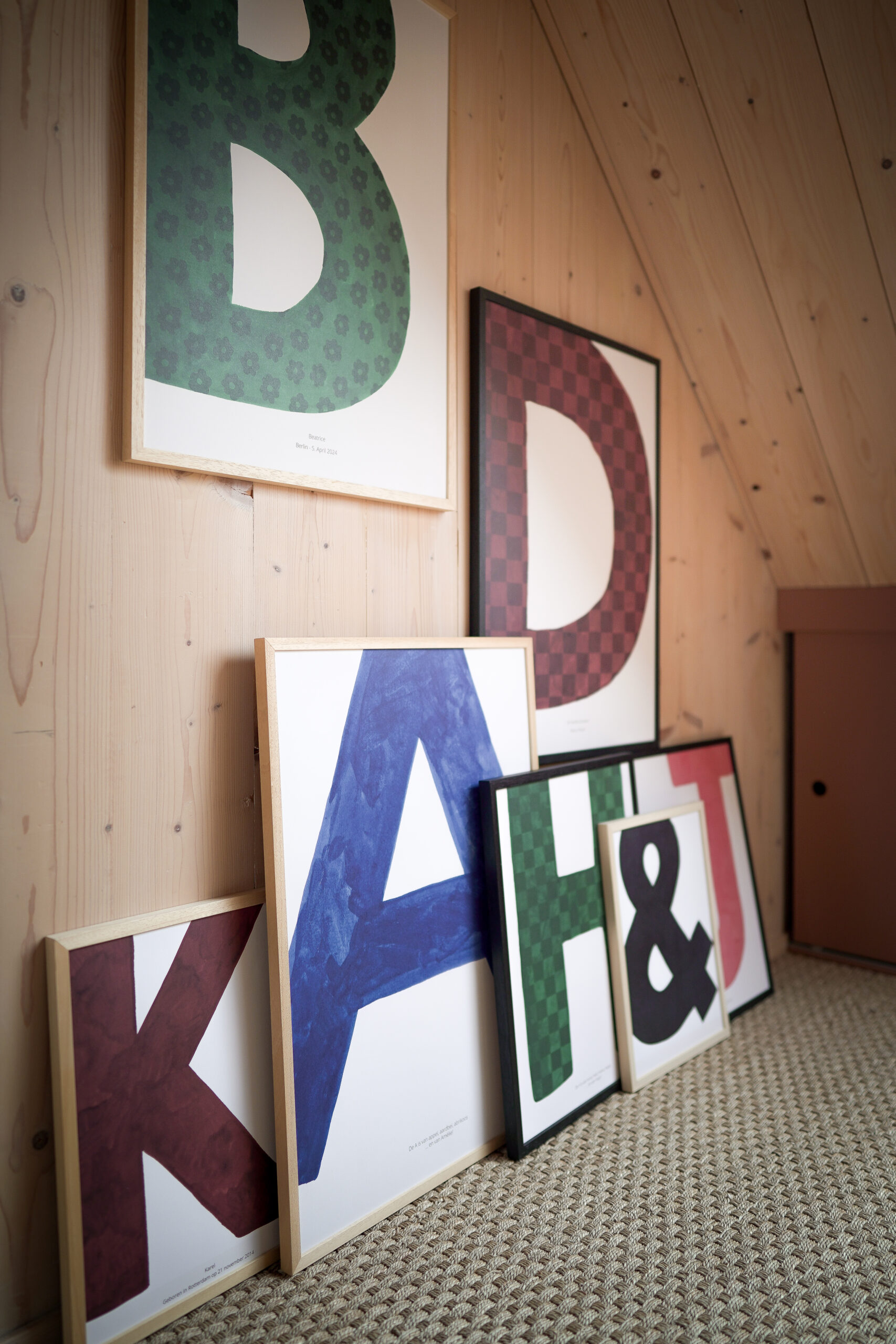Die Buchstabenposter-Kollektion von Joëlle Wehkamp besteht aus einem fröhlichen und farbenfrohen Alphabet, mit dem du dein persönliches Buchstabenposter gestalten kannst: Wähle eine Farbe, füge ein Muster hinzu und verleihe dem Poster mit einem selbst geschriebenen Text eine ganz besondere Note.