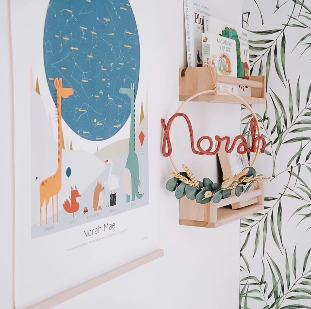 So eine bunte Ecke für Norah! Und eine Fülle von Tierfreunden mit unserem Sternenhimmel von Studio Kars+Boom. Wusstest du schon dass dieser Entwurf unser allererstes Sternenhimmel-Design war?