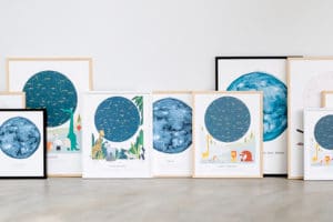 MrStarsky x Studio Kars + Boom, MrStarsky x Marta Abad Blay und MrStarsky x Anna Katharina Jansen: Auf dem Poster sind neben dem Sternenhimmel auch 5 Illustrationen von Sternenbildern, die am Himmel zum gewählten Zeitpunkt zentral standen, zu sehen. Wenn zum Beispiel das Sternenbild Luchs im Zentrum des Sternenhimmels zu sehen ist, dann ist unter dem Himmel auch die dazugehörige Tierillustration des Luchs abgebildet. Das heißt, dass sich die Tierillustrationen auf dem Poster mit dem Stand der Sterne ändern!