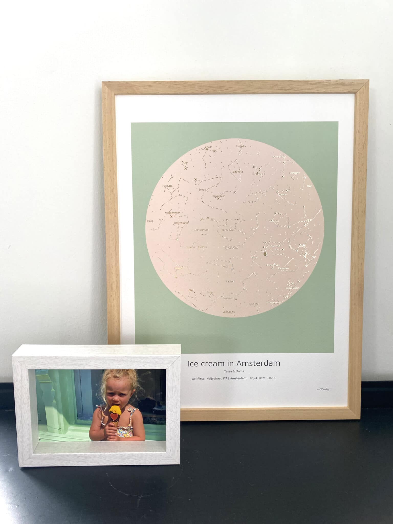 In her opinion, summer holidays equals a (daily) ice cream! Co-founder Liesbeth happily remembers getting a Jan Pieter IJsje together with her daughter Tessa at the Jan Pieter Heijestraat! Captured in our Pistachio sky.