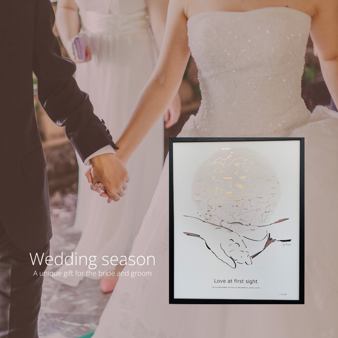 Our starry sky posters can also be given as wedding gifts! This gives you a unique surprise to celebrate love. This can be to celebrate your own anniversary but is even more fun to give as a gift to a (newlywed) couple!
