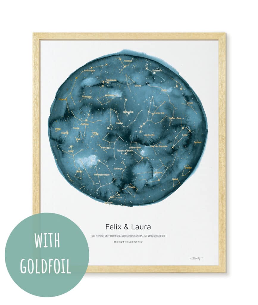 Chez MrStarsky, nous croyons que chaque moment est précieux et mérite d’être célébré. Laissez-vous transporter par l’éclat envoûtant de la feuille d’or et créez une affiche unique du ciel étoilé qui embrasse vos moments spéciaux.