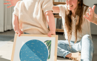 Le moment où elle est devenue mère – un moment inoubliable ! Avec les posters de ciel étoilé de MrStarsky, vous immortalisez ce moment et elle s’en souviendra toujours. Un ciel étoilé élégant avec des feuilles d’or ou un ciel étoilé joyeux avec des illustrations d’animaux pour la chambre d’enfant – c’est vous qui créez l’affiche !