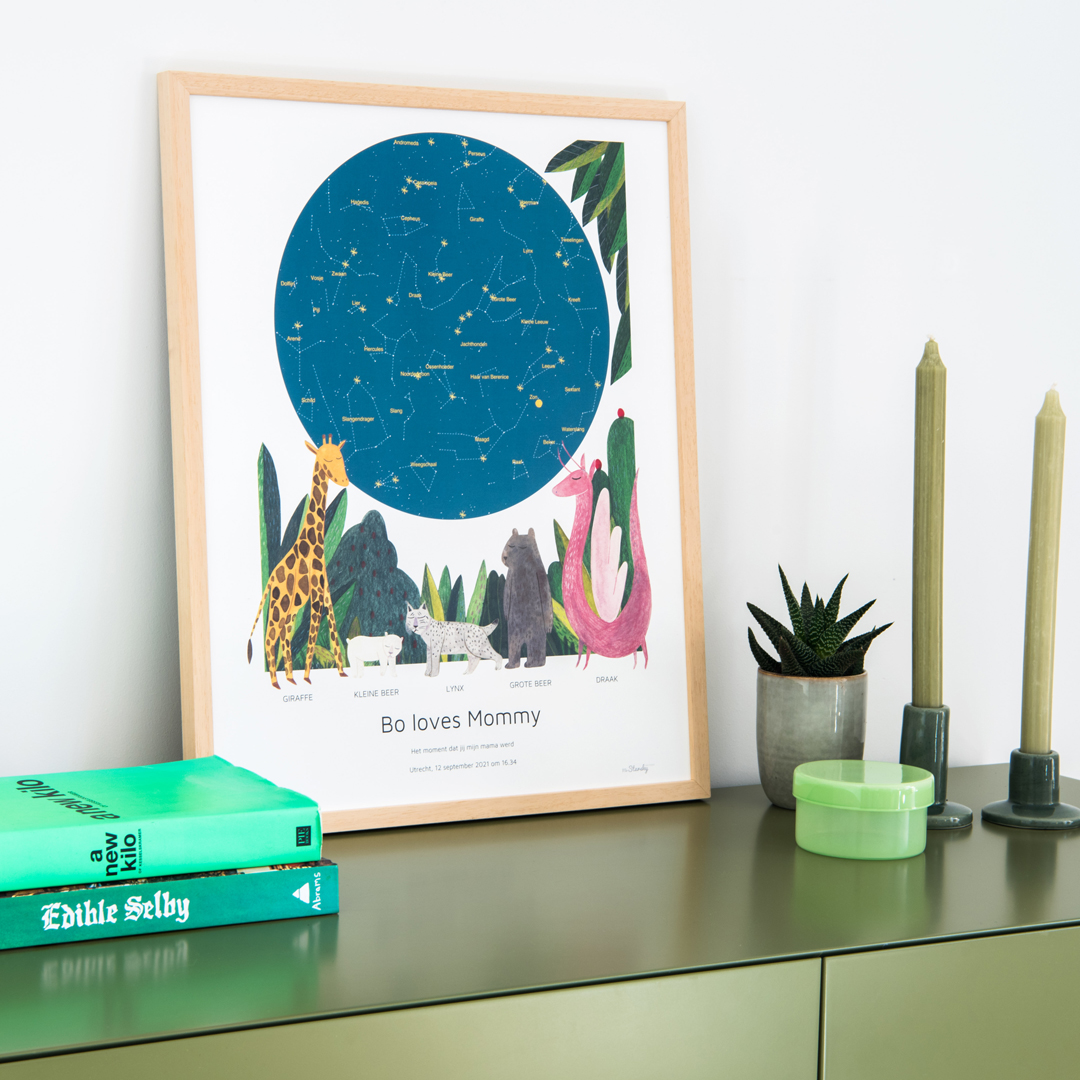 Wil je iemand verrassen met een persoonlijk cadeau? We got you! Met onze sterrenhemel posters – in samenwerking met verschillende talentvolle kunstenaars en illustratoren – creëer je een cadeau voor het leven. Bekijk de verschillende stijlen en ga zelf aan de slag!