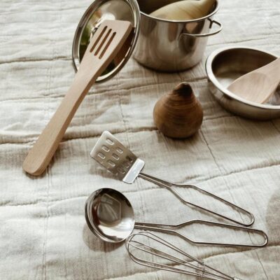 Een ander leuk Sinterklaaskado is dit leuke keukengerei van Zoen voor Gust! De set bestaat uit een metalen pot, pan, vergiet en een reeks metalen en houten keukengerei. Het is gemaakt van roestvrij staal en beukenhout. Geschikt voor kinderen vanaf 3 jaar!